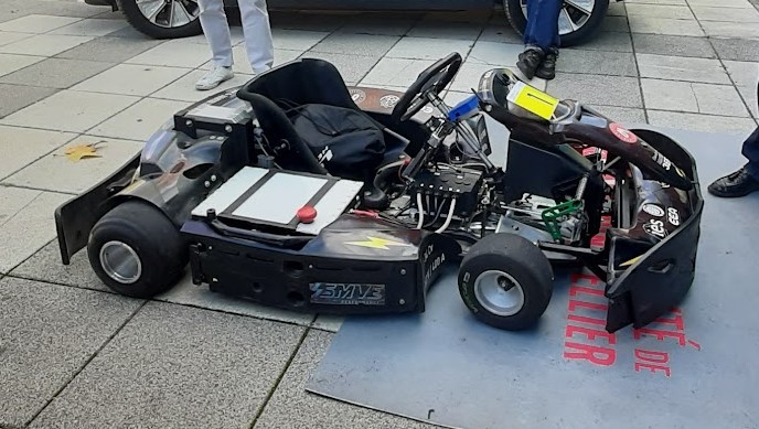 Exposé à l’extérieur, ce kart était mis en marche et présenté par l’équipe, notamment par des étudiants en électrotechnique, permettant aux élèves d’observer concrètement des technologies en lien direct avec les enseignements de Sciences de l’Ingénieur.