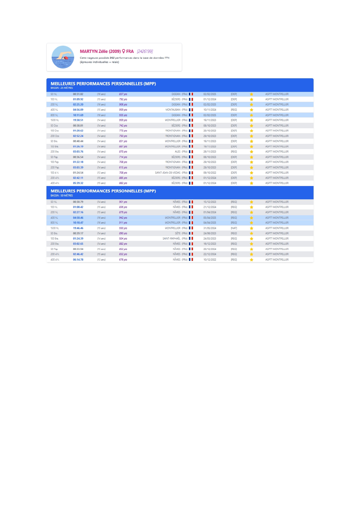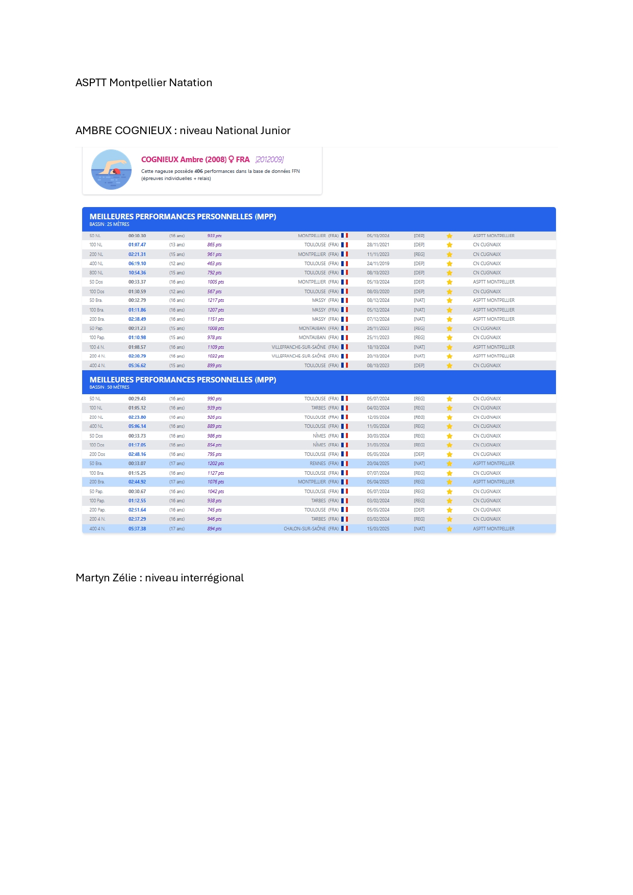 Résultat sportif Natation lycée Mermoz